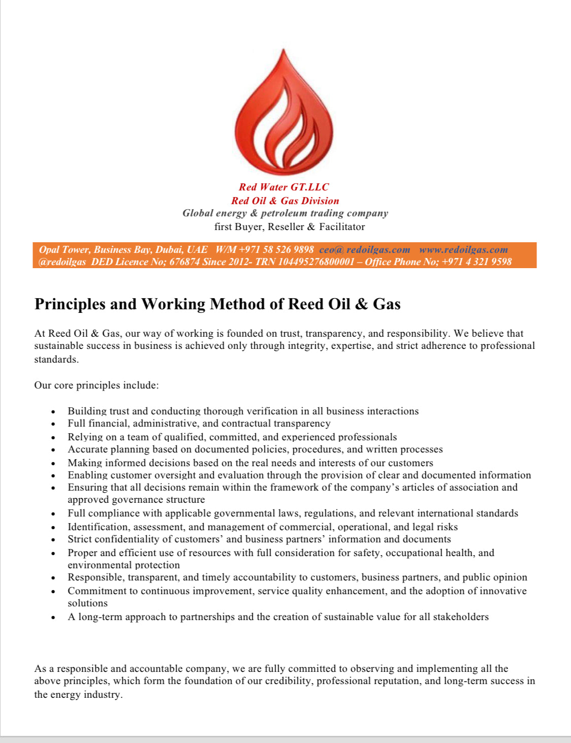 we at Red Oil & Gas Co. are committed to building our path on trust, transparency, and professional excellence.